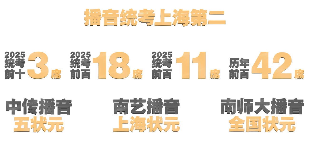 印象集團的播音專業蜚聲國內藝考屆,僅浙江省統考就已蟬聯八次冠軍!上海印象教育坐擁上海戲劇學院師資力量,依托總部完善的教學體系和優質的教研資源,持續刷新成績高度。